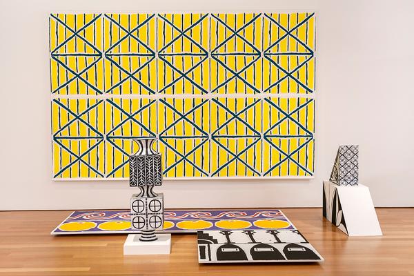 Known for her distinctive black-and-white ceramic objects, Elisabeth Kley’s work stands at the nexus of pattern, decoration, and play. In Kley's first solo museum show, Minutes of Sand, her textile works intermingle with her signature black-and-white ceramics to create a space uniquely hers, defined by bold colors, strong lines, and distinctive forms.