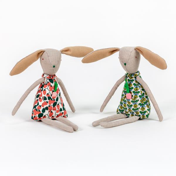 Usagi, named after the Japanese word for rabbit, was born out of artist Nami Yamamoto’s desire to make a gift for a co-worker's newborn. While primarily a drawing and installation artist, Yamamoto also enjoys sewing and practices the Japanese concept of “Mottainai” or “waste not, want not.” Through this sustainable process, the artist utilizes fabric scraps from other sewing projects to create these charming stuffed animals.