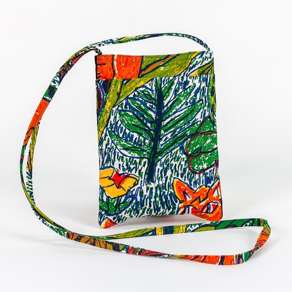 First produced in 1979, Will Stokes, Jr.'s Hidden features a lush green jungle scene adorned with colorful flowers and animals. The perfect carrier for your commute, this Hidden tote will stand out in any crowd.